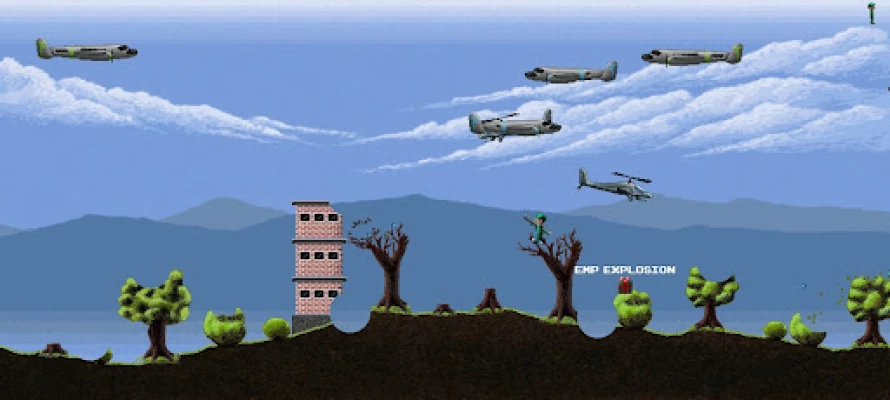 FEATURES ★ 3 different game modes ★ Infinite islands to play on ★ Destructible terrain ★ 9 different enemy aircraft and soldiers ★ Power ups ★ Nuclear bombs ★ Coop multiplayer with gamepads