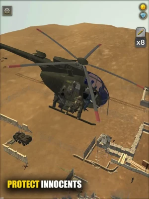 Scenarios and missions will change with each level. In this game you will protect innocent people from evil, attack enemy bases and targets. These targets can be vehicles, helicopters or ammunition depots. Just find the target, focus, hold your breath and release the trigger!
