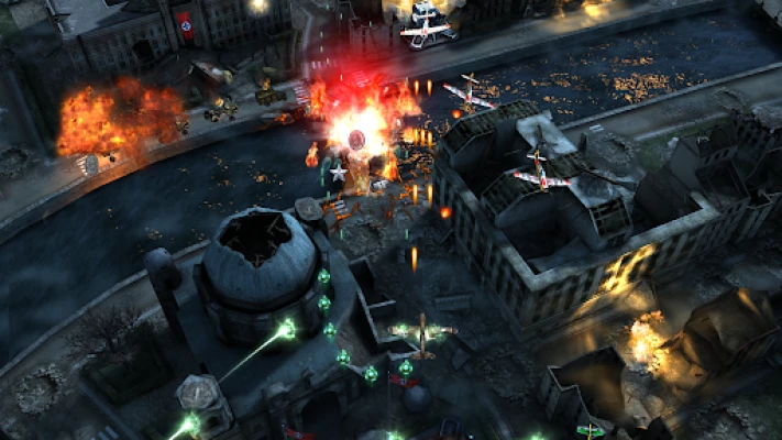 Prepare your plane and destroy the axis powers with Flamethrower, Tail Gunner, Bombs, ...