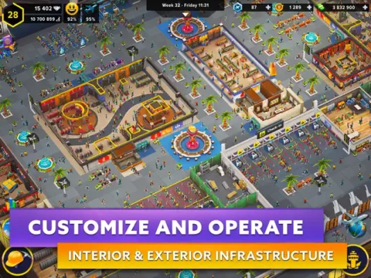 - Strategically build and customize your airport city's infrastructure in 3D, from terminals and runways to coffee shops and stores. You can also choose from a wide range of virtual items to decorate your dream airport.
