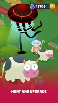 UNCOVER THE FARM LIFE Experience the peaceful farm life from a different viewpoint. Glide over lush green landscapes and rustic farmsteads with your UFO, disrupting this countryside haven. Witness serene scenes of rural simplicity, observing farmers tending daily chores and animals roaming freely.Download "Alien Hunter" now and embark on this unique and thrilling farm-centered escapade! Capture, study, and upgrade your way through this enchanting adventure!