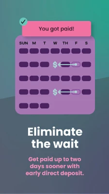 • Early direct deposit, a feature of Ally Bank’s Spending Account, offers eligible direct deposits up to two days sooner