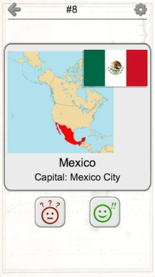 Choose the game mode: * Spelling quizzes (easy and hard). * Multiple-choice questions - with 4 or 6 answer options. * Time game (give as many answers as you can 1 minute). * Flashcards where you can browse all countries without guessing.