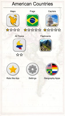 The app is translated into 17 languages, including English, French, Spanish, and many others. So you can learn the names of the American countries in foreign languages.