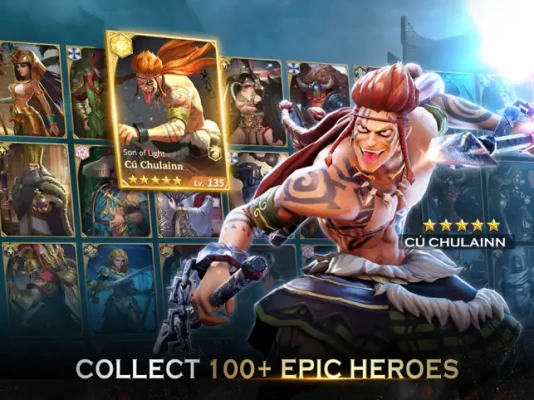 Darkness spreads across the land, tempting countless heroes with its evil. The land is on the verge of destruction. To save the land, you fight alongside hundreds of legendary heroes from kinds of factions. Train your own gods to become your ultimate fighters and conquer the darkness to become the legendary squad.