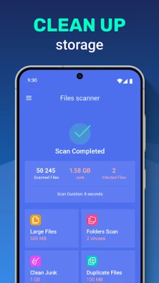 Device protection against hacker attacks. The antivirus will scan, detect and delete viruses on your device. Device protection against all potential threats: viruses, trojans, malware, spyware, and adware.