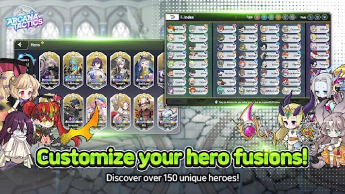 Fuse various heroes that are given randomly to complete your own Arcana deck!