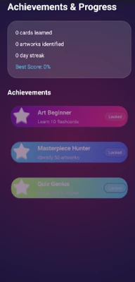 Challenge yourself with art quizzes! Match paintings to artists, identify art movements, and earn badges as you master art history.