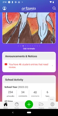 TEACHERS: This app enables teachers and students to take photos of their artwork projects and upload them to an online school art gallery on Artsonia.com. Teachers can also manage their student roster and school projects. Join the thousands of art teachers using our free educational service today!