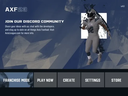 Axis Football features 11-on-11 console-like gameplay, endless customization, and the industry's best franchise mode. Game modes include: exhibition, franchise mode, coach mode and spectate. Franchise mode includes deep stat tracking, drafts, player progressions, a full coaching staff, trades, scouting, free agency, facility management, injuries, practice strategies, and much more! The Team Creation Suite allows for unlimited created created, hundreds of logo and color templates, and tons of uniform and field customizations.