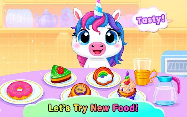 🍓 Yummy Eating Time – Feed your unicorn with tasty fruits, snacks & drinks—learn table manners too!