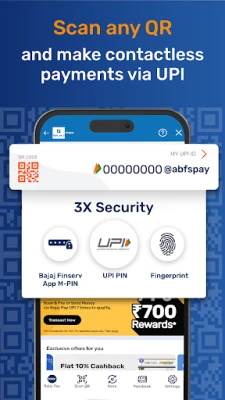 ● Create your unique Bajaj Pay UPI ID, enjoy UPI offers & send/receive money, or pay bills by scanning any QR code & authorize your UPI payments by entering the UPI PIN.