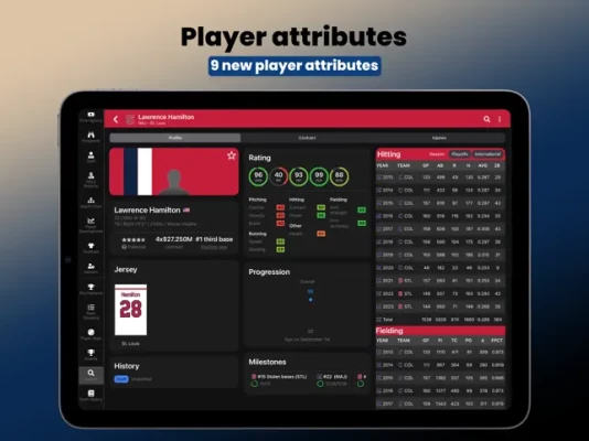 Player Attributes: The new version now includes: Control, Velocity, Break, Speed, Stealing, Contact, Power, Arm strength, Arm accuracy. Customize your team with players excelling in specific skills!