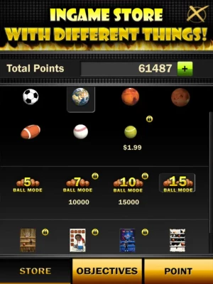 You have 4 levels with different modes and 30 seconds per each. Try to get as many points as you can, make accurate tosses in a row to get additional seconds and challenge your friends. Track your and others high scores by built in Game Center!