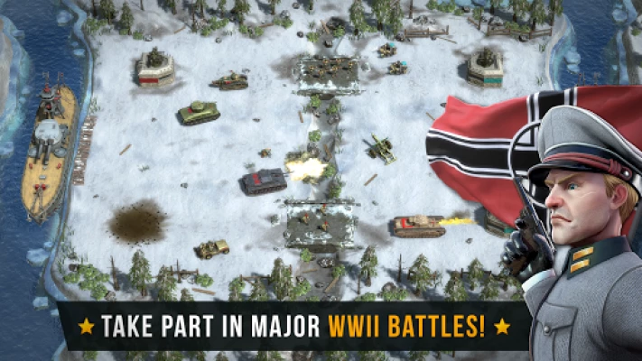Take part in major WWII battles in Battle Islands: Commanders, from the sandy dunes of North Africa to the bitter cold of the Eastern Front! Master the art of war against real opponents from around the world and reap the spoils of war.