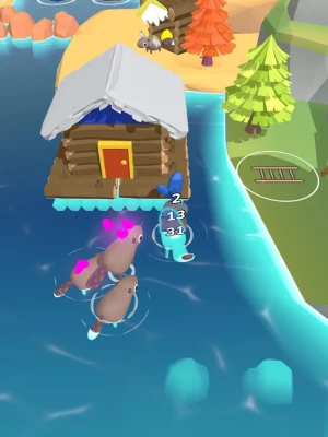 The water is rising! Help the beaver collect woods and ores to build a dam and save his village!
