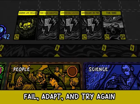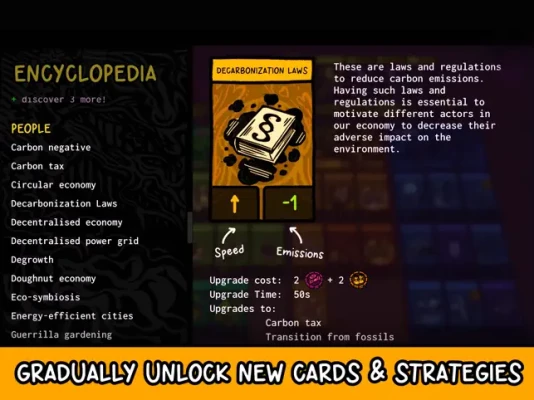 Game cards represent inventions, laws, social advancements, or industries - each designed on the basis of real-world climate science. In addition, partially randomized world events occur, forcing you to adapt your strategy. Gradually unlock new cards in the game encyclopedia and chart your path towards a new future.