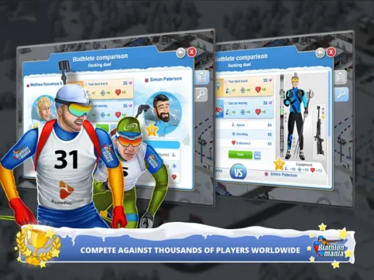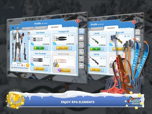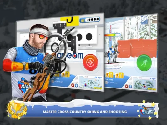 Biathlon Mania is an action sports game with RPG elements and the most successful and most played biathlon game of all time. You can control, improve and train your biathlete as you see fit. You decide everything that goes on - improve your attributes, construct new facilities, learn new skills, build up your club, defeat opponents from all across the world, win tournaments and be at the top of the world. Whether you win or become an also-ran is purely down to your skill. Show everyone that you’ve got it! Biathlon Mania is easy to learn, but difficult to leave.