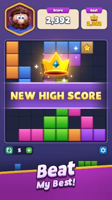 Relax, train your brain and test your IQ! Place Block Crush: Block Puzzle Game in the 8x8 board and fill rows, columns, or squares to clear jewel blocks from the game. Play for as long as you can without running out of space to beat your highest score!