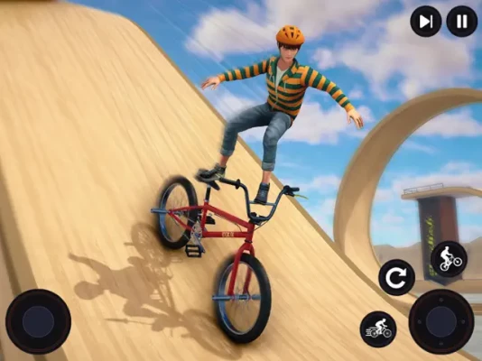 * Key Features * • Engage in thrilling stunts on dynamic and challenging tracks • Personalize your bicycle with a variety of customization options • Immerse yourself in the game with realistic sound effects & and stunning graphics • Progress through increasingly challenging levels, unlocking new stunts and obstacles as you improve • Experience the excitement from different perspectives with innovative camera angles that capture every stunt in style