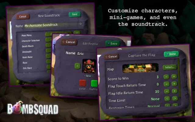 BombSquad supports touch screens as well as a variety of controllers so all your friends can get in on the action. You can even use phones and tablets as controllers via the free 'BombSquad Remote' app.