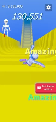 Watch out for obstacles during the fall that cause spectacular bone-breaking animations. The goal? Break as many bones as possible and enjoy the gravity-defying action!
