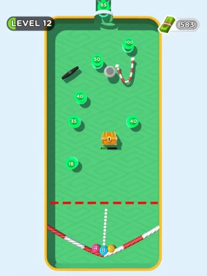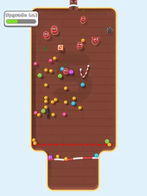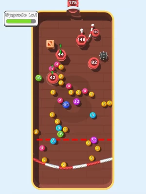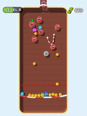 Pull the rope down, collect balls and throw them to destruct bounce buttons and get balls from them