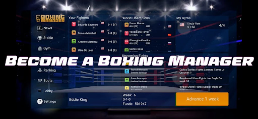 Build your stable, develop your fighters, manage your gym trainers, make the right fights, guide your fighters to the world titles.