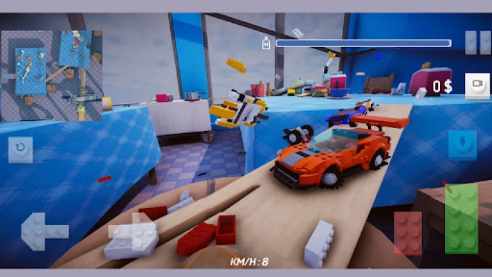 Brick Car Crash 7 Apart Tour the arcade RC racing game on big open boxed locations.