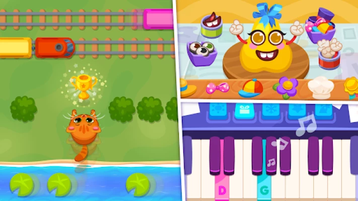 It's time to try out this endless fun school game! Learn abc & how to draw with coloring for kids. Play music for kids & learn how to play piano or learn multiplication. Try them all within cute animal games. The cute pets - Bubbu cat, Duddu dog, Bunny, Crocodile, Piggy, Hedgehog, Owl, Penguin, and Panda are waiting for you in this virtual pet game!