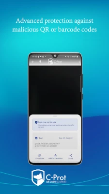 C-Prot QR Code Scanner protects your device from malicious URLs embedded in QR or barcode codes. It offers high quality URL security checks on all QR and barcode codes, allowing you to be redirected to a secure website free of scams, malware and dangerous content.