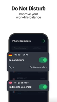 📞 Full control over your second phone number—decide when it’s on, off, or sent to voicemail.