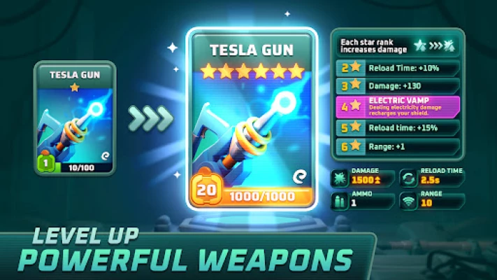 In order to be the best tactical shooter choose between a wide variety of space weapons. Do you like machine guns, shotguns, and rocket launchers? Or do you prefer more exotic weapons like shock gun, laser gun, and pulse gun? Shoot or be shot in the battle royale arena, and use your earnings and rewards to level up your weapons.
