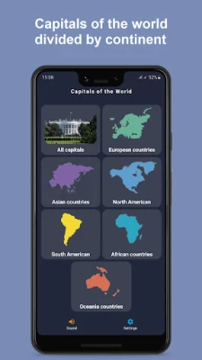 * See what the most beautiful capitals in the world look like * The game is divided by continent: - Europe - Asia - America (South and North) - Africa - Australia and Oceania * Also, you can select all countries of the world * See the location of the country on the map and other details by clicking on the hint * What do you think, Vatican is a country or a capital?