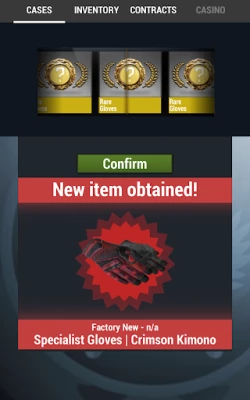 App consists of 10 tabs - Cases, Inventory, Contracts, Jackpot, Coinflip, Roulette, Shop, Collection, Upgrader and Trading. To switch tab simply tap on its name.