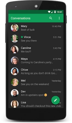 Chomp comes with a bunch of great features, notably a passcode lock, privacy options, scheduled SMS sender (reminders, birthday wishes), stop a text while sending, pin favs to top, backup, blocklisting / SMS blocker, signatures, text snippets, quick reply popup (even on lock screen), multi-select picture gallery, dual sim, better MMS and GROUP messaging and much more....