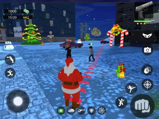 With breathtaking graphics and captivating gameplay, Christmas Gangster: Rope Santa delivers a unique action gaming experience. The intricately designed 3D city is your playground, filled with secrets to discover and gangsters to defeat.