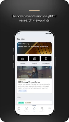 This digital banking experience provides our clients with a comprehensive view of their accounts. It enables our clients to explore their portfolios in detail, analyze and compare metrics and access publications around our core themes and views, with just a tap, pinch or swipe.