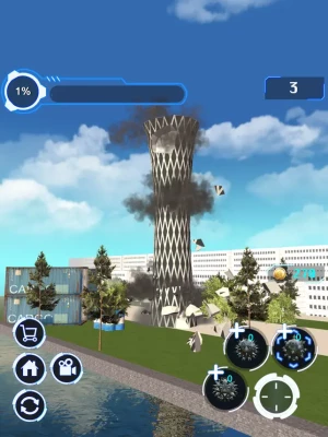 Proceed through the map by demolishing the targets. You need to do as much damage as possible by using a limited number of attacks. Each structure you destroy gives you coins to unlock special missions. Teardown buildings with this smash-and-demolish game. Destroy things to get rid of stress and let some steam off.
