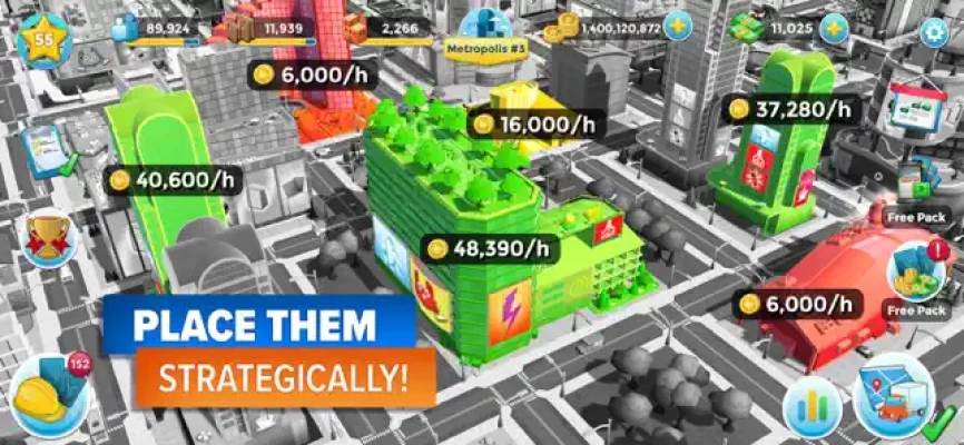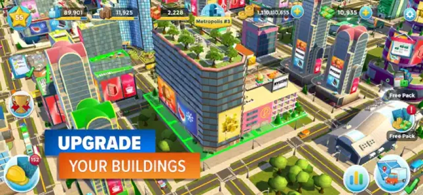 Collect a WIDE COLLECTION of Cards: Open free packs every day to find new buildings, decorations, vehicles and more. Find cards to unlock new creations and upgrade them to boost existing infrastructure. Discover rare and epic cards with outstanding stats like towering skyscrapers and stunning attractions.