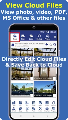 DriveHQ FileManager can manage both local and cloud files. You can easily navigate to different folders, upload or download files/folders between local and cloud. It supports regular features like Copy, Cut, Paste, Delete, View and Edit, and advanced features like backing up photos, videos, files and folders to the cloud, and sharing files with granular access control.