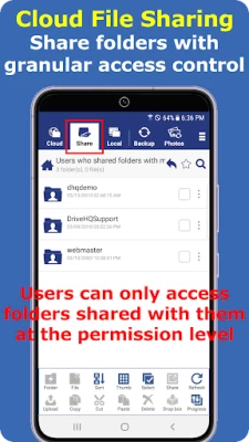 (3) DriveHQ supports advanced folder sharing with granular user access control.