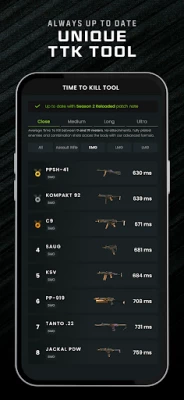 Find the perfect loadout quickly, or use the app to store your builds and share them with your community and friends.