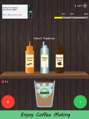Be a Barista and help out Coffee Shop for Coffee-making!Enjoy coffee-making process with popular drink menu . Do it quick and accurate to get high score!