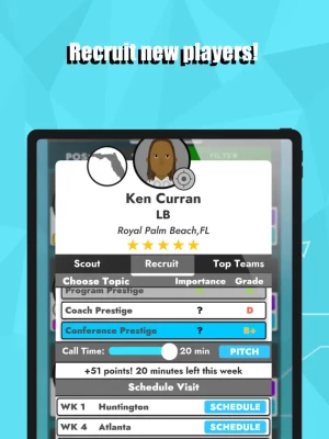College Football: Dynasty Sim puts you at the helm of a college football team. Do you have what it takes to build your team from the ground up, from a cupcake to a perennial powerhouse? Choose a College Football team, customize your non-conference games, make roster changes, scout, and recruit new players to see if you have what it takes to win Conference Championships, Bowls, or even compete in the playoffs and win the National Championship.
