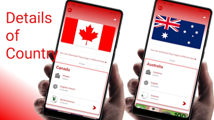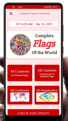 Discover all national flags of the world, along with rich and educational data about each country. Whether you're a student, traveler, or just curious about the world, this app is made for you!