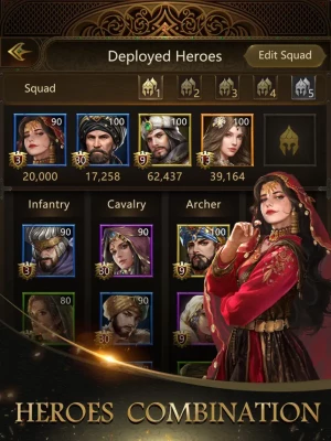 - Different Heroes with unique attributes and powerful skills to lead a variety of Troops: Cavalry, Infantry, Archers, Siege Engines.