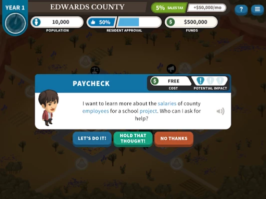 Want to try your hand at running your own county government? In Counties Work, you can! Stay on top of resident requests as you develop the local community, make important budgeting decisions and solve crises that pop up along the way.