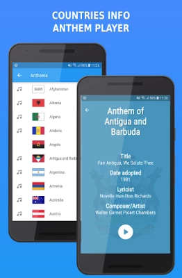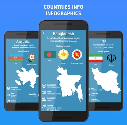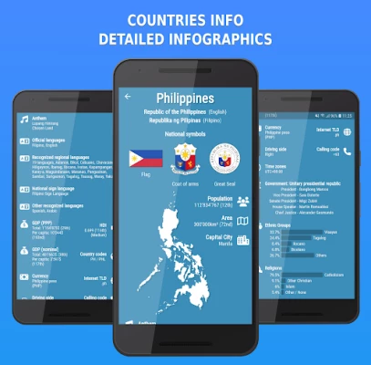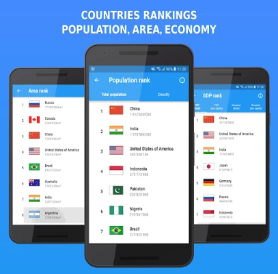 Essential information about different countries around the world, directly on your mobile device. Upon opening the app, users are presented with a list of all the countries around the world, and they can select any country to access its information. The application typically includes a wide range of information about each country, such as: