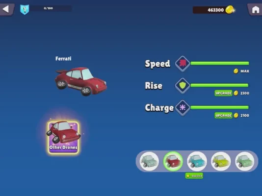 Different types of drones with unique characteristics. Unlock and upgrade drones as players progress.